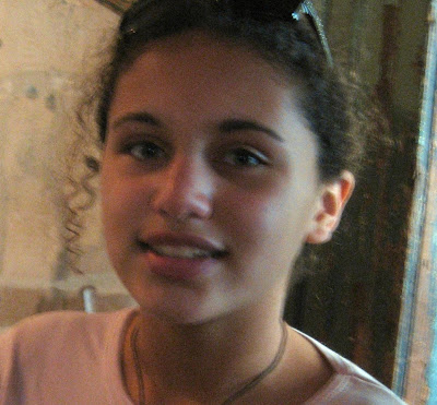 Because this granddaughter often spends time with me I have taken hundreds of photos of her since she was a baby. Here, in a downtown restaurant located in the old newspaper offices, I loved the background colors of the pink peeling plaster walls and woodwork, her pale pink French jersey, the curls escaping from her pulled back hair. Definitely 'pretty in pink'.
