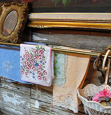 My visit to SuzAnna's Antiques the week before last, before an unusual Southern snow covered everything in their outdoor area and turned it white, found me snapping away inside at pink roses.................silk ones, fabric printed ones, framed ones, even beaded ones.