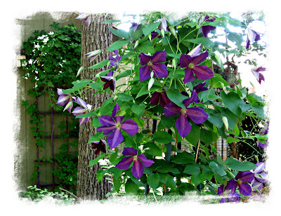 The garden grew...did it ever! Pollen continued to quietly pile in the corners dusting everything with yellow. Empty feeders kept the birds at bay, how wonderful when they return within minutes of being refilled. The baby wrens had 'flown the coop' leaving their tidy nest in the kitchen window box..........which now needs replanting with Summer flowers.