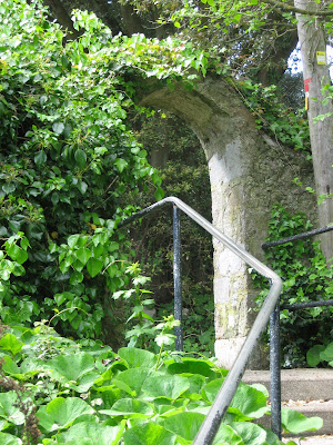 The path passes through the lower level of this home's "folly" built at the bottom of their garden.