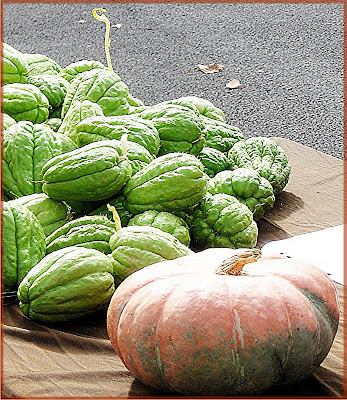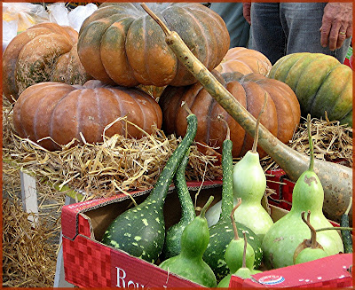 I was surprised to find such beautiful pumpkins, squash and gourds in France. Apparently they are very popular and the French make wonderful dishes with them. Seemed to be a greater selection available than what we have here. These images are from the Pumpkin Fete we visited in a small village last October.......such fun.