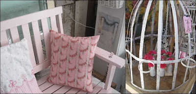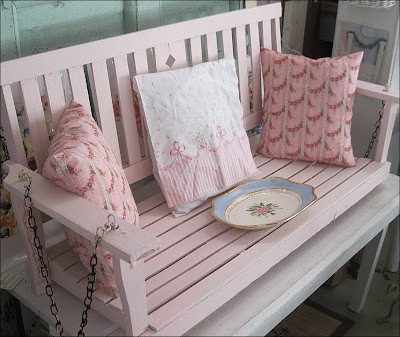 Another local friend was also at the shop Thursday, Jeannie from Uniquitiques her precious cottage shop in Hillsborough, NC and where she too is selling Vanessa's creations. Her booth at SuzAnna's is looking gorgeous as always. We all sighed over the pink porch swing and this unusual 'crinoline' planter. She finds such unique items!