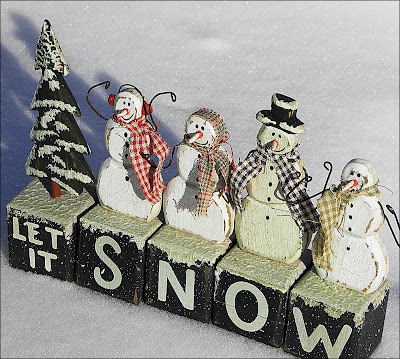 It was my own fault.....................I left these grinning cuties out since Christmas. Guess Mother Nature stopped by, read the message and granted a wish!
