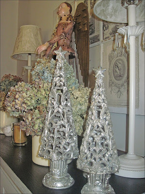 If you ring my doorbell I'll be happy to show you around however I'm not done yet! This is the year I'm simplifying so holiday decorations have been edited, that takes time, and I'm just using things I really love to look at and which tie in with my simple French country, with a bit of Nordic thrown in, look.............mainly in white, cream and silver.