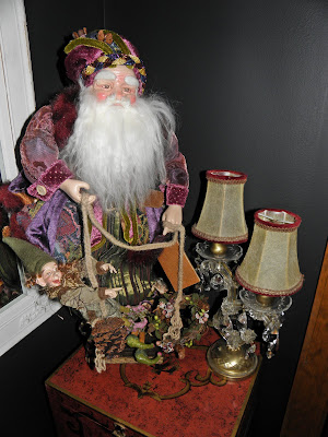 Here's some color in the hallway...........do love the 'old world' Santas in rich colored velvets, and their little helpers. Monday, December 7, 2009