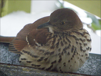 Brown Thrasher ~ usually only comes to feeders in severe Winter weather.