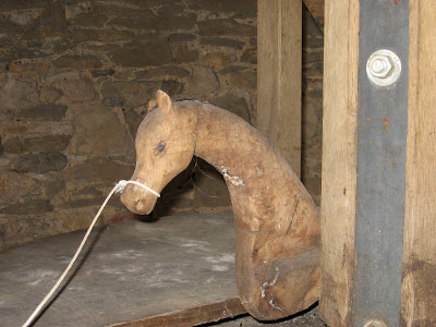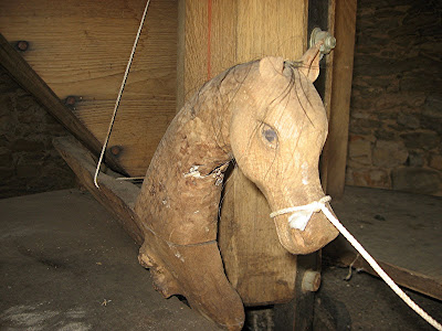 Not being familiar with the interior workings of a windmill, we were surprised to find this amazing carved horse's head which was apparently part of the mechanism for the grinding stones. How we wished a French miller had been available to show us how everything worked!