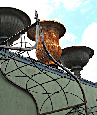 My first stop was in the vast outdoor area to spend an hour drooling over the many beautiful iron urns and containers for the garden, in colors from deep rust and creamy white, to French gray, verdigris green and even combinations..........