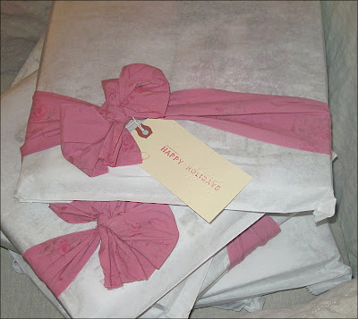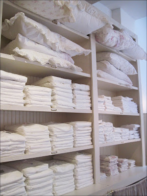 The wall of Shabby Chic Couture linens wasn't exactly shabby either! These are gorgeous sets of sheets, duvet covers, bed skirts etc., much more high end (and higher priced) than the Simply Shabby Chic line found at Target ~ although they too are fabulous and I use them on my beds. I liked how Rachel has these packaged in pretty matching fabric bags rather than plastic.