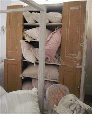 Loose white and washable slip covers, paintings of English roses, vintage crystal chandeliers, rumpled yet beautiful beds, painted flea market finds, the comfy cottage and farmhouse feeling, and a touch of French..................I feel these are the things that Rachel Ashwell brought to us here in the USA.